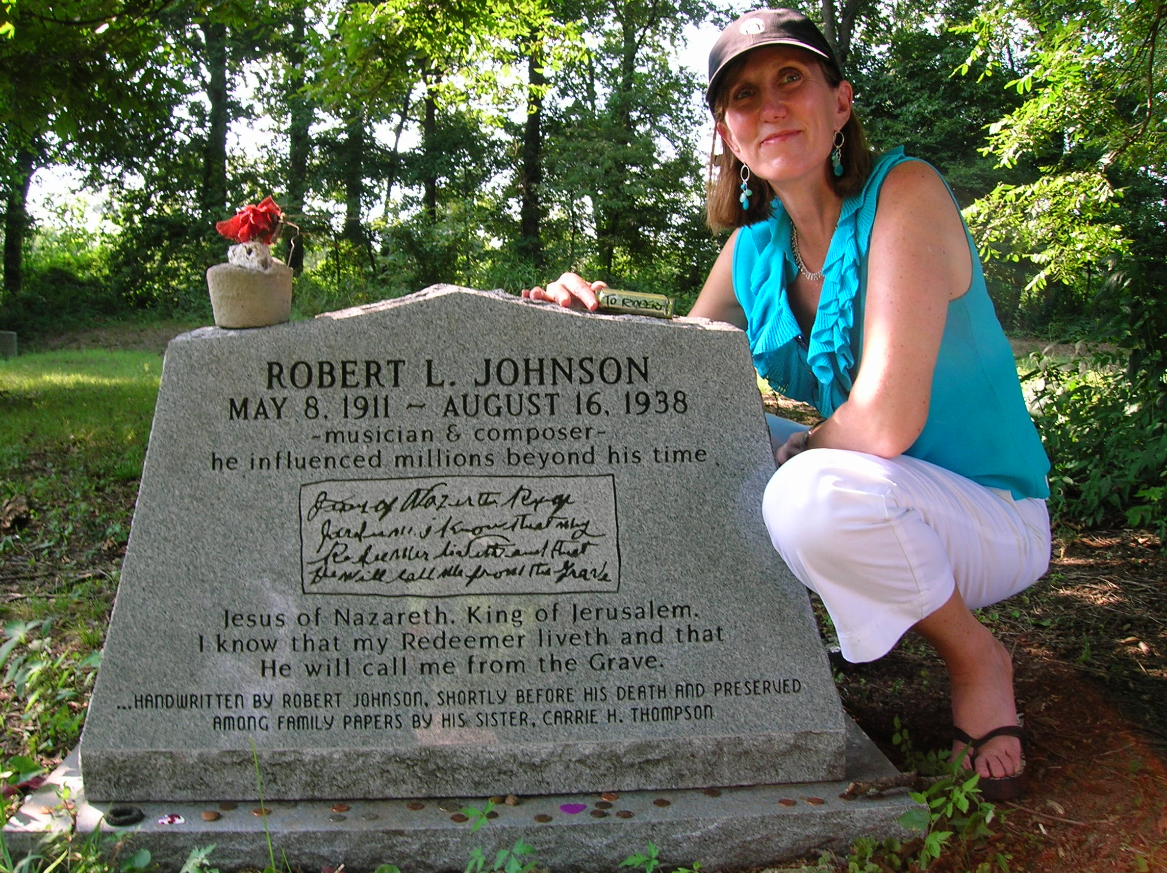 Jeanie Clinton, aka The Delta Queen, at the gravesite of Robert Johnson, north of Greenwood. (Note: Elvis Presley also died on August 16, thirty-nine years later in 1977.)